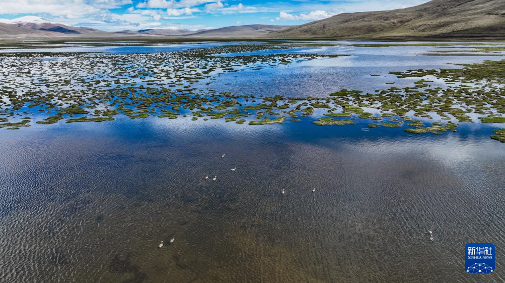 這是6月4日在青海隆寶國家級自然保護區拍攝的斑頭雁(無人機照片)。新華社發(杜笑微攝)