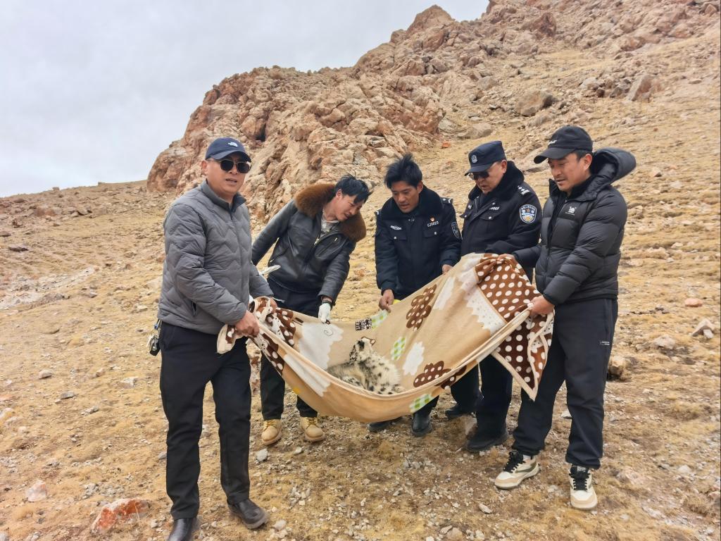 雪豹“凌小蟄”救護現場。(青海野生動物救護繁育中心供圖)