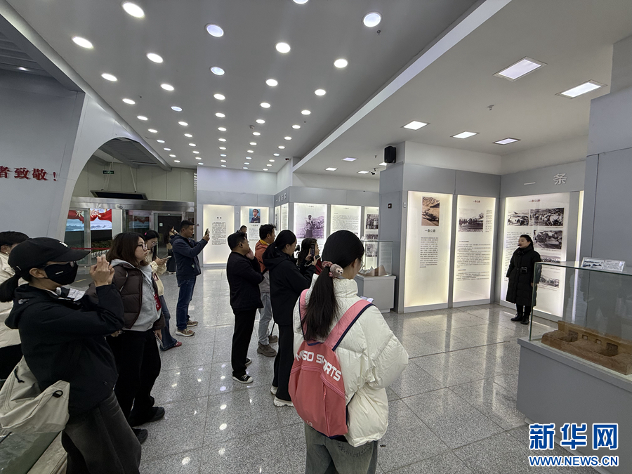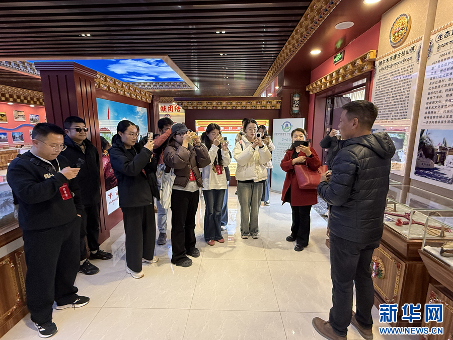 采訪團在長江源村村史館參觀。新華網 魚昊 攝